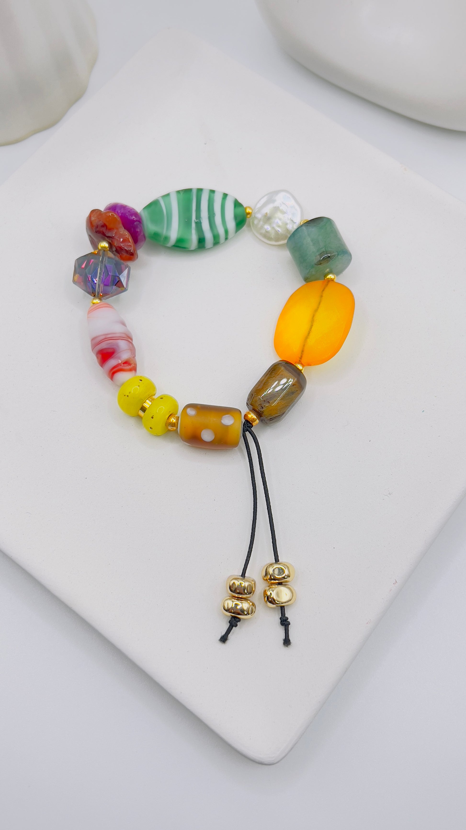 Pulsera elastica multicolor y con diferentes texturas de beads .
